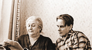 Ахматова читает «Поэму без героя» Павлу Лукницкому. Комарово, 1962.