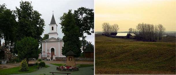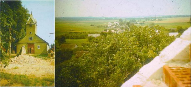 Село Коцюны, старый костел и вид на Голны-Вольмеры со строящейся колокольни