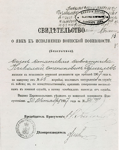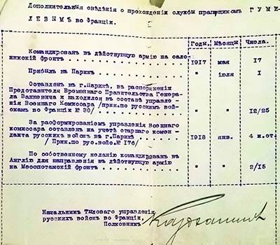 Лист из «Послужного списка прапорщика Гумилёва»