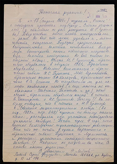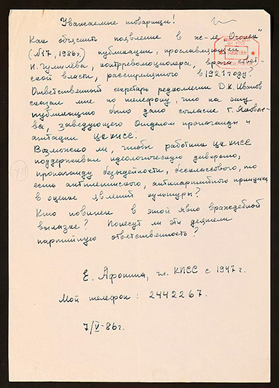 Письмо в редакцию журнала «Огонек»
