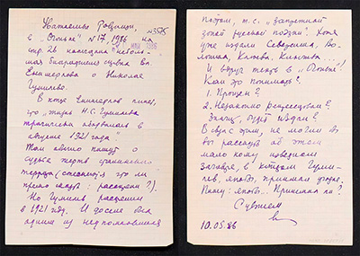 Диалог между мной и Гумилёвым по поводу моей рецензии о “Драконе”. Лист 1