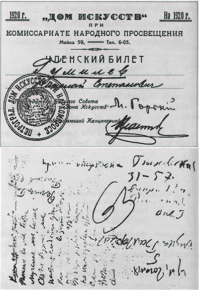 Членский билет «Дома искусств»