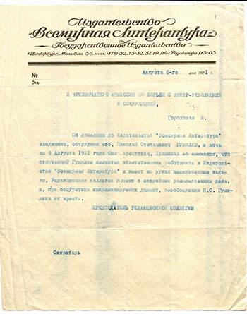 Ходатайство издательства «Всемирная литература»