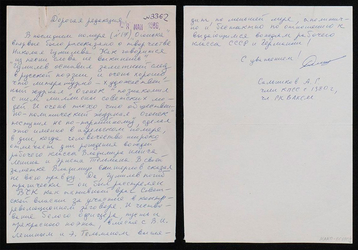 Письмо в редакцию журнала «Огонек»