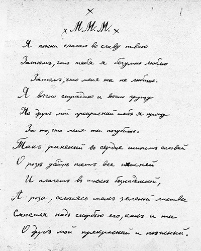 Мария Михайловна Маркс вошла в историю русской поэзии тем фактом, что знаменитый впоследствии поэт Николай Гумилёв очень увлекался юной тифлисской гимназисткой Марией Маркс и посвятил ей свой первый ещё рукописный поэтический Альбом. Альбом хранится в Рукописном отделе Института русской литературы РАН (Пушкинский дом) Р.1. оп.5 № 158.